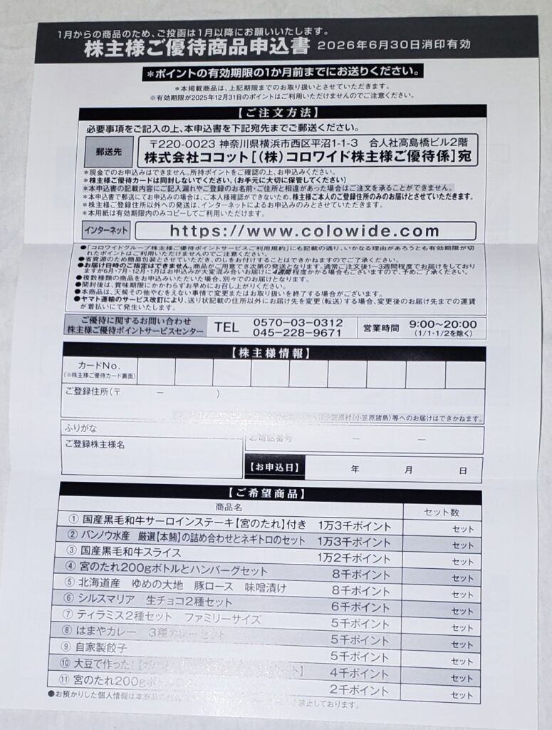 何らかの理由で株主優待サイトにアクセスできない場合、一応郵送で注文することもできます。