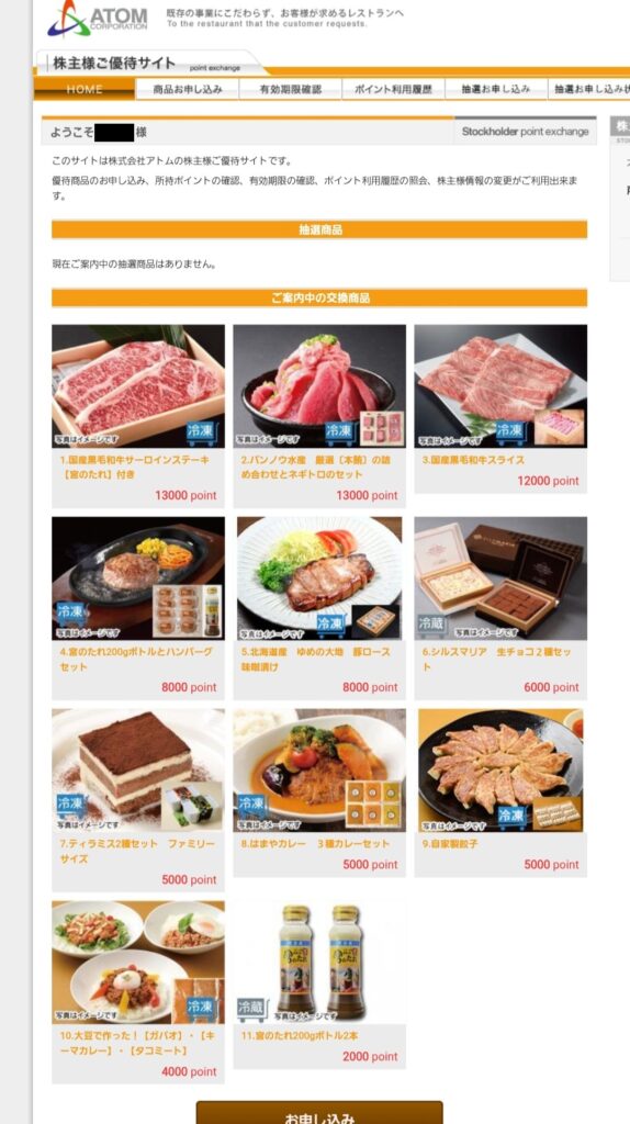 このように、株主優待サイトではポイントと商品を交換することが出来ます。