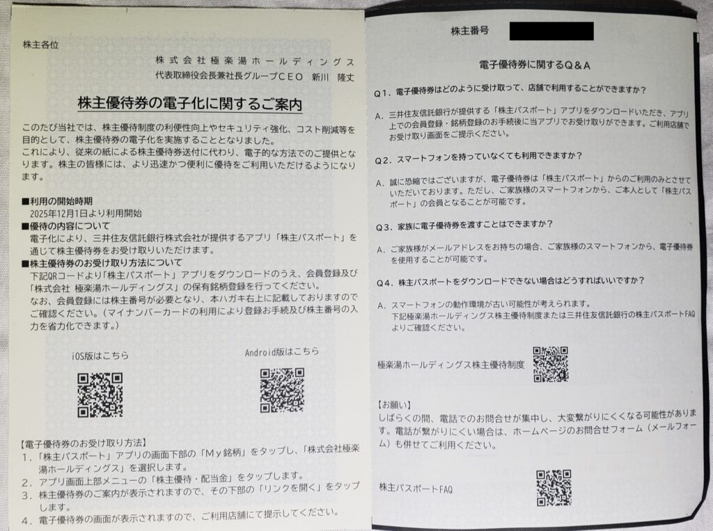 「極楽湯HD(2340)の株主優待窓口に電話して対処してもらう」ということになりました。