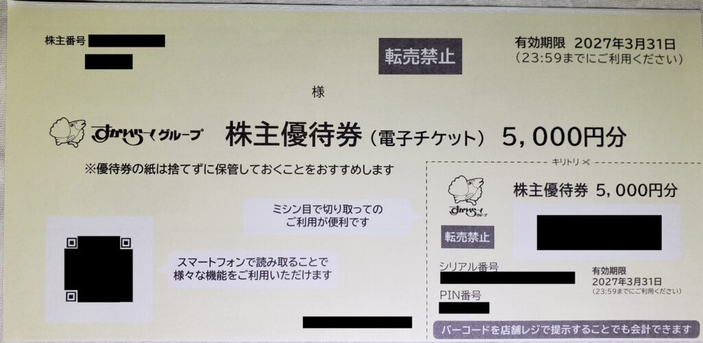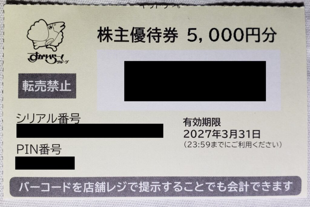 株主優待券の使用期限は、優待券が届いてから1年後の月末です。