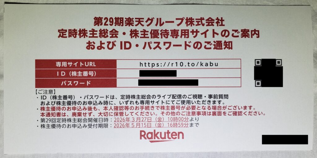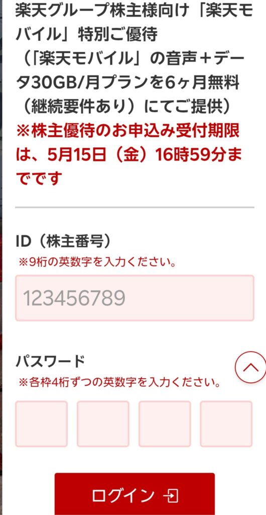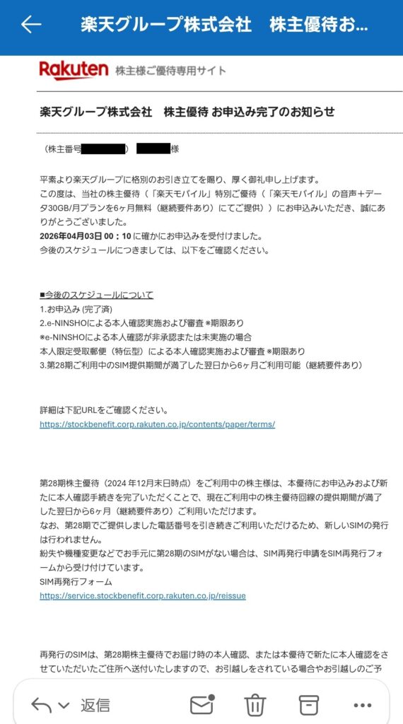 楽天グループ(4755) 株主優待申し込み案内