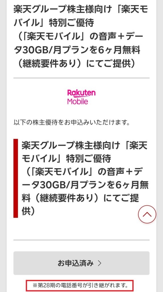 前回の株主優待SIM番号を継続して利用するには、以下の条件があるようです。