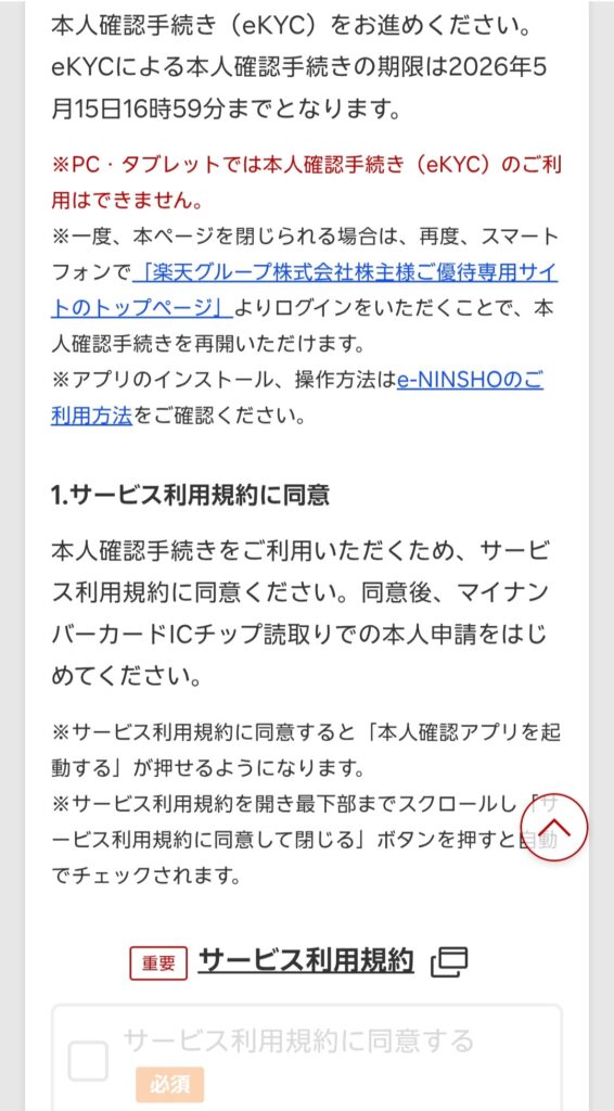 楽天グループ(4755) 本人確認手続き